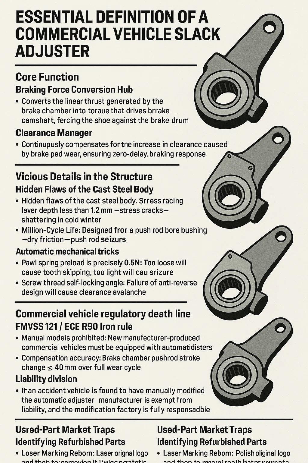 보상 정확도: 전체 마모 주기에 걸쳐 브레이크 챔버 푸시로드 스트로크 변경 ≤ 40mm.